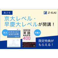 【Z会の通信教育】高2生向け京大レベル/早慶大レベル新規開講!9/14(水)までにお申し込みの高2生の方に、志望大に応じた特典問題集をプレゼント
