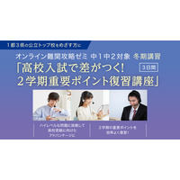 1都3県の公立トップ校をめざす中1生中2生を対象としたオンライン冬期講習「高校入試で差がつく!2学期重要…