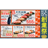 大衆寿司居酒屋「鮨 酒 肴 杉玉」 天然本鮪や杉玉だけの限定酒を驚きのお値段でご提供!創業5周年を記念した『杉玉創業祭』を開催!