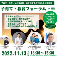 11月13日(日) 13:30~15:30、子育て・教育ビジネスの第一線でご活躍する神戸や姫路の方をお呼びしてイベン…