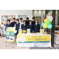 高知県北川村の中学生が、東京銀座で村をPR 「ユトワ 洗顔石けん」PRイベントに、1時間で100人来場!