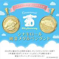 サンリオ“シナモロールデビュー20周年記念”世界で限定500枚! シナモロールが「純金メダルペンダント」に!11月11日発売