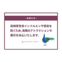 アドベンチャーワールド(和歌山県⽩浜町)では、日本国内での高病原性鳥インフルエンザの発生状況を受…
