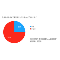 【20代~30代の令和夫婦調査】まわりを含め事実婚をしているカップルは25%。事実婚を選択しているカップルが増えてきている!?