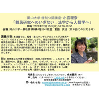 【岡山大学】特別公開講座 小宮理奈「難民研究へのいざない:法学から人類学へ」〔12/15木, 岡山大学津島キャンパス〕