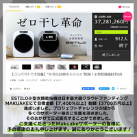 【一般販売開始】クラウドファンディングで応援金額3,700万円超え!コンパクトで大容量!「エスティロ小型衣類乾燥機」が12月25日一般販売開始。
