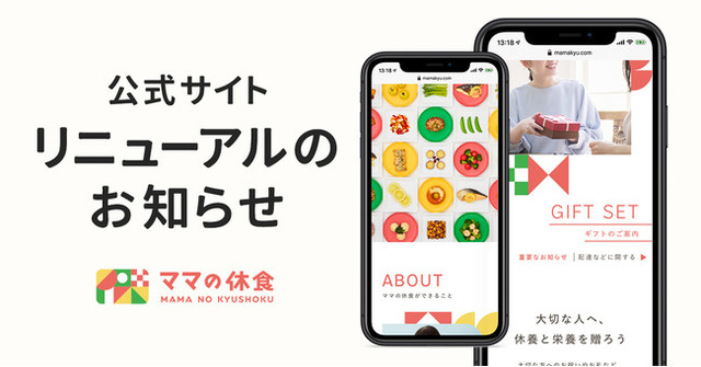 株式会社MYPLATEは、2021年2月より、“ママとご家族に休養と栄養を届ける”宅食サービス「ママの休食」を運営して参りました。サービスリリースから約1年が経過した今、改めてママの休食が目指すビジョンをサイトに明示するとともに、商品を安心してお買い求めいただけるよう、より親しみやすいサイトデザインへ一新しました。