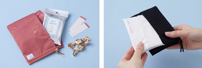ウェットティッシュやガムの包み紙など外出中に出るごみをすぐに捨てられるごみ袋付きのポーチです。使い捨ての専用ごみ袋をセット・交換でき、ポーチやカバンの中を衛生的に保てます。
