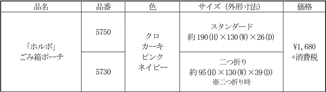 ■「ホルポ」ごみ箱ポーチ 製品仕様