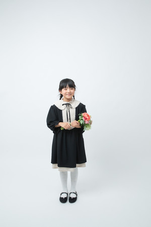 長く着るには、子供の成長に合わせて服のサイズも変化させる仕掛けが必要で、さらに、フォーマルな場面での着用を想定していることからも、服のデザインは上品さと落ち着きを持ち合わせている必要もありました。自社ブランドの立ち上げやキッズ服の開発など、全てが初めてでしたが、これまでに培ってきた縫製技術やノウハウを最大限に活かし、社内での開発・研究を行い、また、町内でブランディングなどを手がける法人との連携もあったことから、最終的には、裾丈:最大12cm、首回り最大4cm、さらにウェストの位置や太さの調整も可能なフォーマルワンピースが完成しました。卒園式や入学式、冠婚葬祭、お稽古ごとの発表会など幅広い場面でご着用いただけます。サイズは(一般的な)120-140cmで調整可能で、卒園から小学校中学年まで着用できることを想定しています。裾丈は内スカートに付属するループやボタンなどで、首丈やウェストの位置は裏地に付属するアジャスターを調整することによって、お子様の成長に合わせてご家庭で簡単に調整できます。