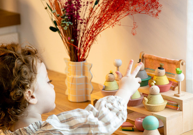 遊び盛りのキッズは何でも興味津々。『お人形に触らないで。』とお願いするのも一苦労、、、。そんなキッズにぴったりの“触って飾れる知育お雛様”です。木製の人形のボディーに磁石が埋め込まれているので、磁石でくっつき、積み木のような感覚でお子さまと楽しんで飾れます。