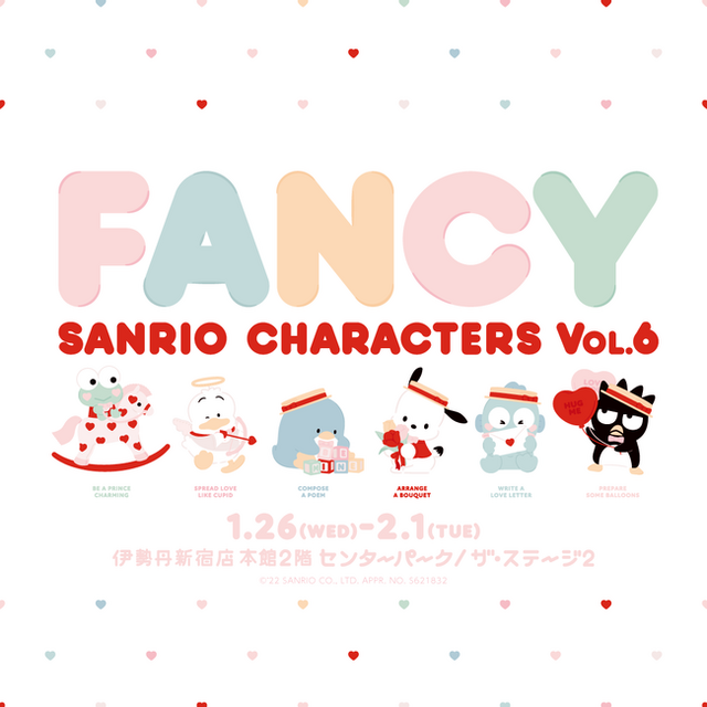 伊勢丹新宿店は、1月26日(水)から2月1日(火)の期間、「FANCY SANRIO CHARACTERS Vol.6」を開催します。本イベントは、毎年大好評の伊勢丹新宿店×サンリオキャラクターズと、話題のブランドがコラボレーションするイベント「FANCY SANRIO CHARACTERS」の第6弾です。今回のテーマは『HAPIDANBUI Valentine!』。"ハッピーになりたい男子たちが、V字回復を狙う"という意味を込めた人気の男の子6キャラクターユニット「はぴだんぶい」の、明るく元気なイメージをモチーフにしたカラフルなアイテムが大集合!総勢14ブランドとコラボレーションした、洋服や雑貨、バレンタインにぴったりのケーキやドーナツなど、「FANCY SANRIO CHARACTERS」ならではの可愛いアイテムでバレンタインを盛り上げます。また、三越伊勢丹オンラインストアでも1月26日(水)より販売します。