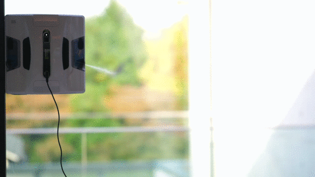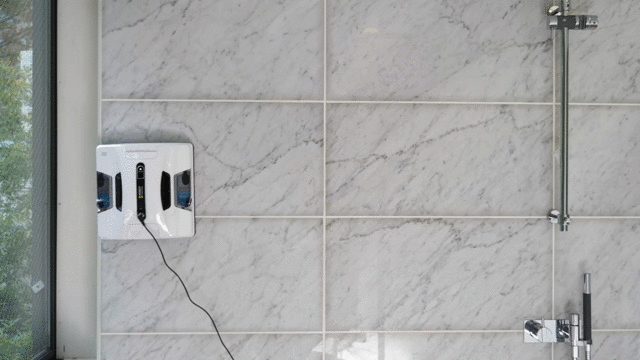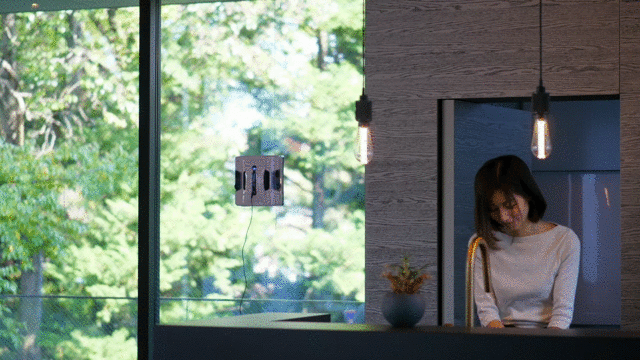 本体を窓に貼り付けたら、再生ボタンをワンタッチするだけで自動清掃がスタート。付属のリモコンや専用アプリをダウンロードしたスマートフォンからでも操作することができます。