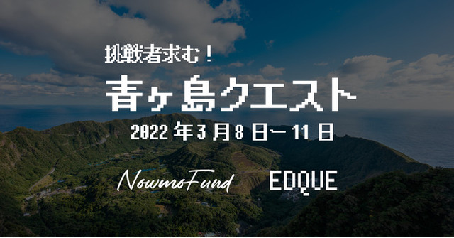 事業創造を通じて教育の可能性を広げる株式会社NOWMO(本社:東京都中央区 / 代表取締役CEO:中野修二 以下、NOWMO)は、運営する教育基金「NOWMO FUND」を活用したホンモノ体験プログラム「エドクエ(EducationQuest)」の第1弾として、青ヶ島をフィールドにした青ヶ島クエストの参加者募集を2022年1月28日23:59:59まで行います。