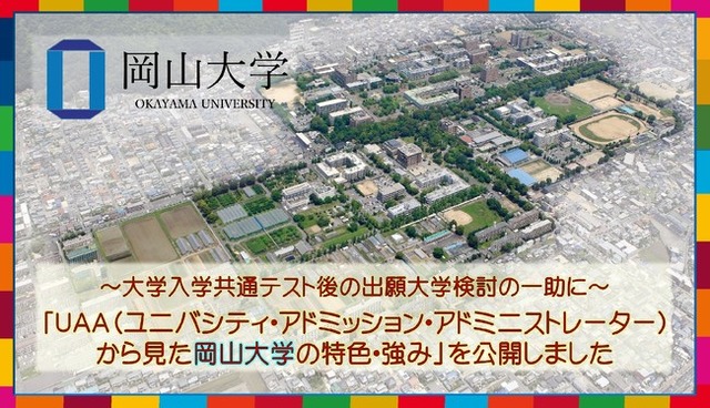 国立大学法人岡山大学(本部:岡山市北区、学長:槇野博史)では、本学において高校との接続・連携を主な業務とするUAA(ユニバシティ・アドミッション・アドミニストレーター)が在籍しています。今回、「UAA(ユニバシティ・アドミッション・アドミニストレーター)から見た岡山大学の特色・強み」と題したまとめ情報を、2022年1月13日に本学ホームページで公開しました。