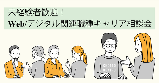 Webマーケター、Webディレクター、Webライターなど、Web関連の職種の業務内容について説明し、キャリアの相談に弊社若手社員が対応します。新卒もしくは第二新卒などの若手のWeb/デジタル関連業務の未経験者を対象としています。