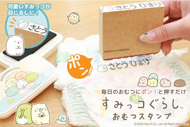「すみっコぐらし おむつスタンプ」は、文字を読めない子どものために、イラスト入りのお名前スタンプは作れないか?という声から企画した、かわいいすみっコとお子さまの名前が一緒になったスタンプ。