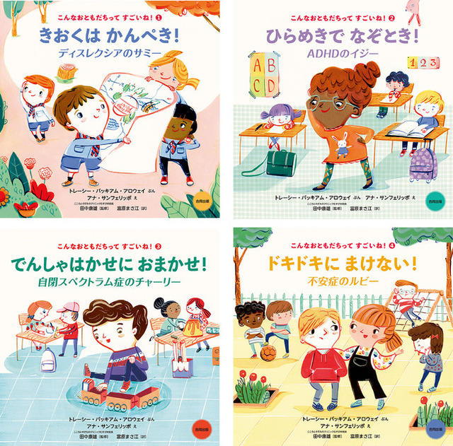 ディスレクシアのサミー(1巻)、ADHDのイジー(2巻)、自閉スペクトラム症のチャーリー(3巻)、不安症のルビー(4巻)には、それぞれ苦手なことがあります。