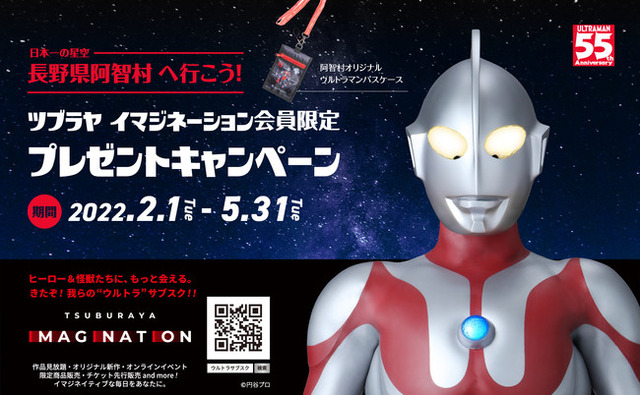 日本一の星空「長野県阿智村」の、株式会社阿智昼神観光局(代表取締役社長:白澤裕次)は、株式会社円谷プロダクションと協力し、2022年2月1日(火)から2022年5月31日(火)の期間、円谷プロダクションの作品や世界観を楽しんでいただくためのデジタルプラットフォーム「TSUBURAYA IMAGINATION」会員が、阿智村内の対象施設を利用すると、STAR VILLAGE ACHIオリジナル「ウルトラマンパスケース」がもらえる、「日本一の星空 長野県阿智村へ行こう!TSUBURAYA IMAGINATION会員限定!プレゼントキャンペーン」を実施します。