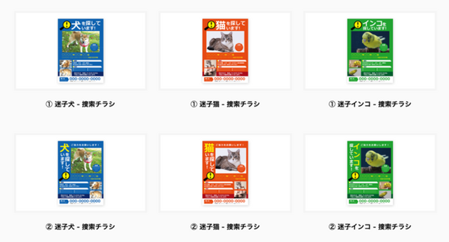 迷子のペット捜索に役立つ「デザインテンプレート」を配布しています。