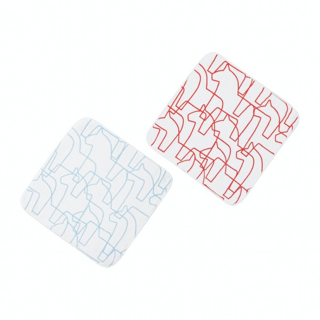 やわらかい手触りのタオルハンカチです。ダーラナホースの青と赤のシルエット柄。ポケットに入れやすいサイズなので使い勝手が良いです。