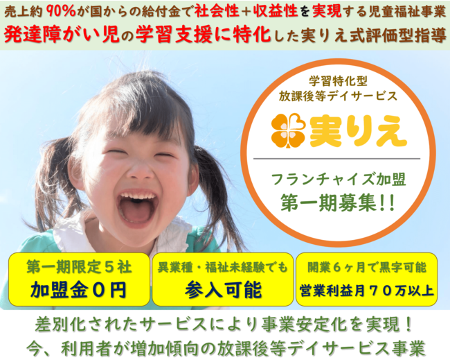 発達障がい児の学習療育に特化した放課後等デイサービス「実りえ」を運営する株式会社希成(本社:福岡県大牟田市、代表取締役:山脇慶二)は、2022年2月より全国でフランチャイズ展開を開始しますので、お知らせいたします。
