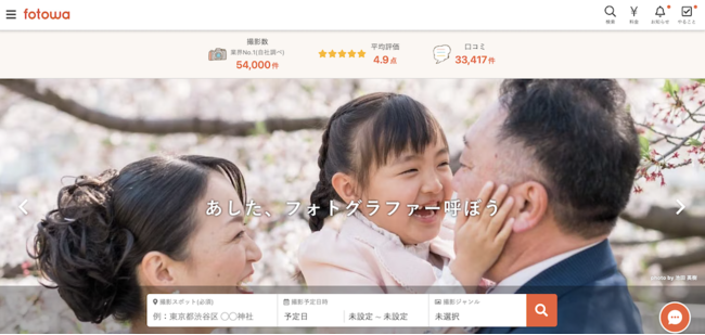 「fotowa」は、撮影して欲しい人とカメラマン(以下、フォトグラファー)をつなぐ、家族・子ども向けの出張撮影プラットフォームです。