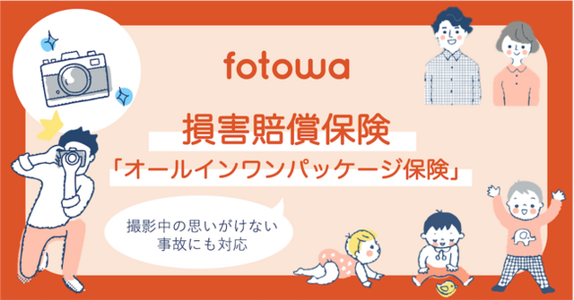家族・子ども向け出張撮影プラットフォーム「fotowa(フォトワ)」(運営:ピクスタ株式会社/東京都渋谷区 代表取締役社長:古俣大介、東証マザーズ:3416)は、損害保険ジャパン株式会社が提供する損害賠償保険「オールインワンパッケージ保険」に加入したことをお知らせいたします。