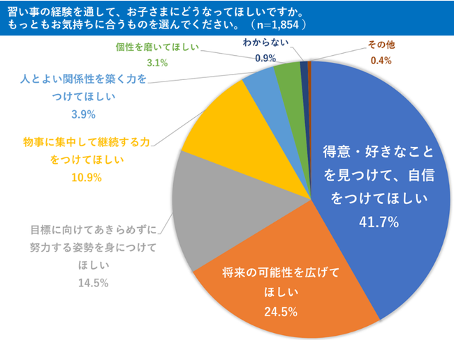 ※1 習い事を通して「得意・好きなことを見つけて自信をつけてほしい」「将来の可能性を広げてほしい」が合計6割