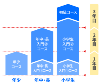 発達段階に応じた学年別のカリキュラムで、3つの力と3つのジャンルで無理なく伸ばします。