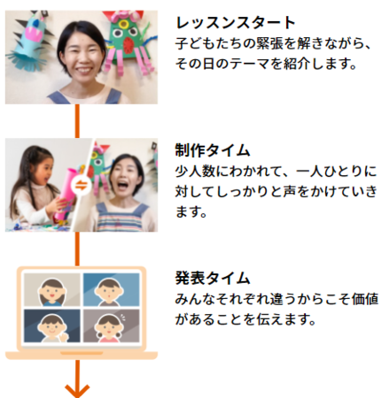 また、すべてオンラインのライブレッスンですので、教室への送迎の負担がなく、共働きでお忙しいご家庭でもお気軽にご受講いただけます。新型コロナへの感染不安も軽減しながら、ご自宅で「好きなこと」を夢中になって学ぶことを通して、将来の可能性が広がる新しい学び体験を提供してまいります。
