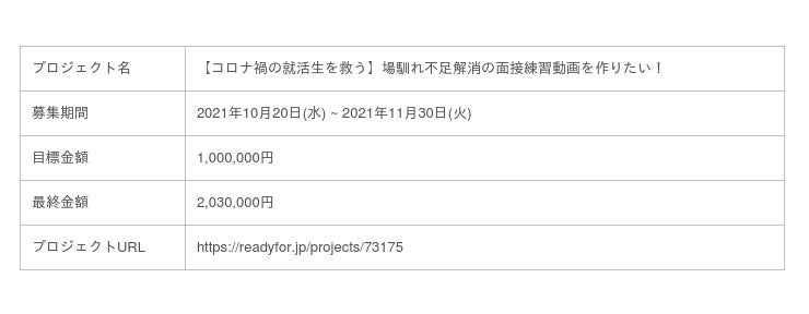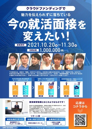 新卒学生向けの就活情報サイト「就活の教科書」を運営する株式会社Synergy Career(本社:大阪府大阪市、代表取締役社長:岡本 恵典)は、「READYFOR」にて実施していたクラウドファンディングを、目標の203%である203万円の資金調達に成功。その調達した資金をもとに作成した、コロナ禍の就活生を救うための面接練習動画を2022年2月1日より公開いたします。
