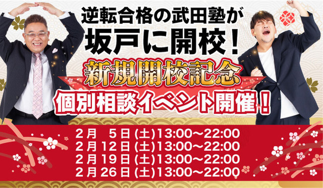武田塾坂戸校の開校を記念して、坂戸校では個別相談イベントを実施いたします。