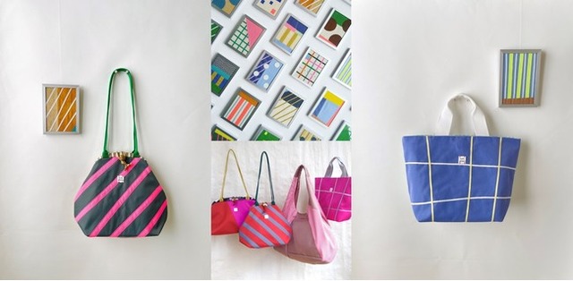 がまぐちバッグやトートバッグ、そして、室内を彩るコラージュフレームを、心弾む色合わせを目指して制作しました。お気に入りのひとつを見つけていただけますように。