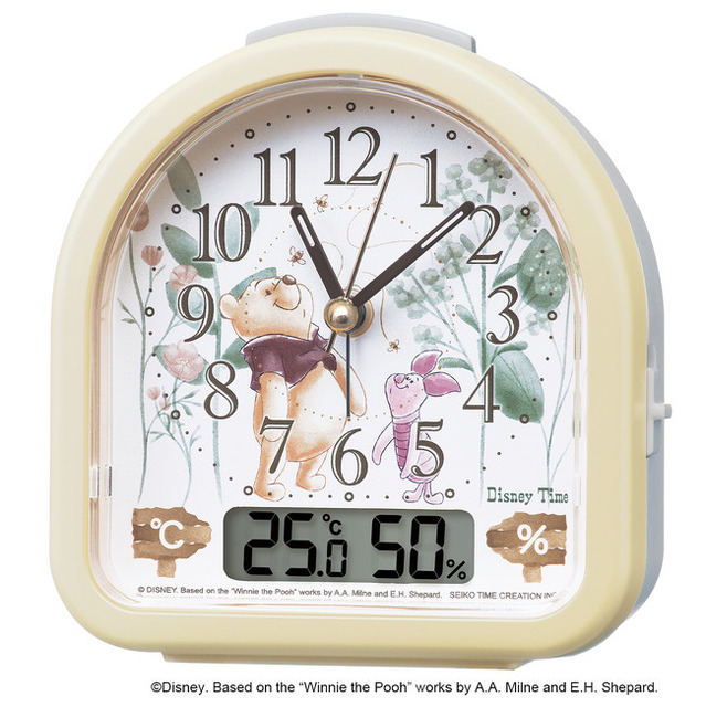 お部屋の温度や湿度が分かる実用的な機能を搭載しています。温度湿度表示部分と時計部分を分けて見やすくしました。