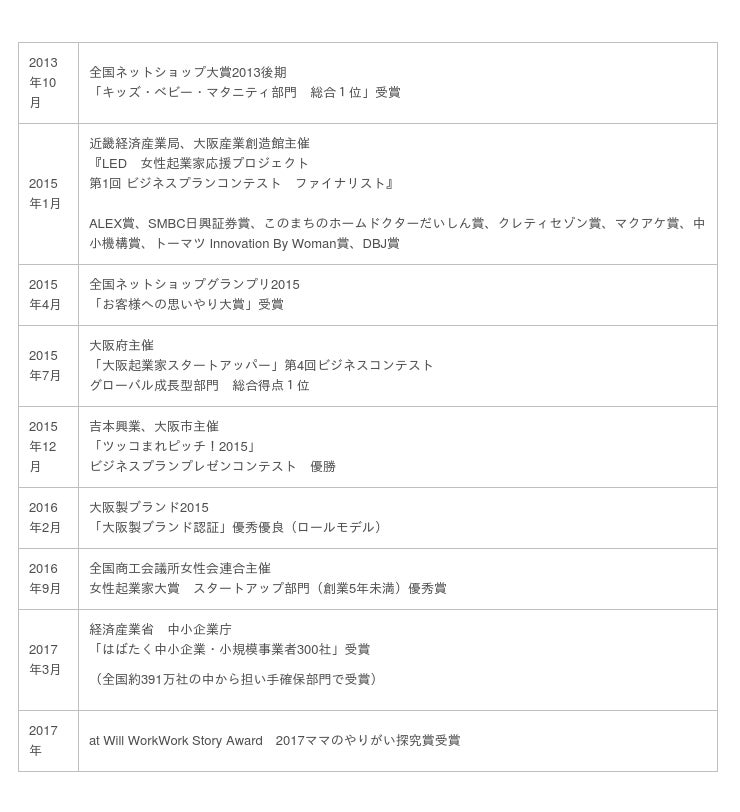 2013年2歳と4歳の子供がいる中で抱っこ紐の「だらーん」を解決する抱っこ紐収納カバールカコを発売。育児中でも働きやすい会社を!ママ雇用を50名以上生む事ができました。その取組は「全国女性起業家大賞」スタートアップ部門優秀賞、経済産業省 中小企業庁「はばたく中小企業・小規模事業者300社」、「大阪製ブランド認証」優秀優良(ロールモデル)、全国ネットショップグランプリ「お客様への思いやり大賞」他、受賞してまいりました。 そんなルカコから発売する【第2弾】抱っこ紐の「頭かっくん」を解決するスヤコもママたちの声から生まれました。