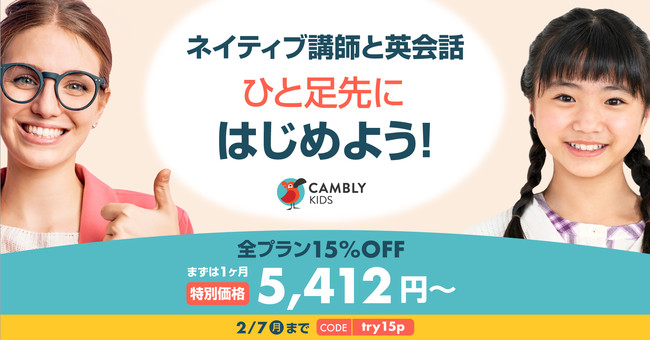 Cambly Inc.(本社:アメリカ・サンフランシスコ、日本代表:佐藤 亜希子)が提供する子ども向けオンライン英会話サービス「Cambly Kids(キャンブリー キッズ)」は、2月3日(木)から2月7日(月)までの5日間、Cambly Kidsを全プラン15~36%OFFでご利用いただける特別セールを開催いたします。