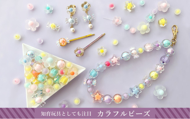 お子様だけでなく、大人もついつい手にとりたくなるような色鮮やかなビーズを使って、リングやネックレスなど、世界に一つだけのアクセサリーを親子一緒に作ってみてはいかかでしょうか♪