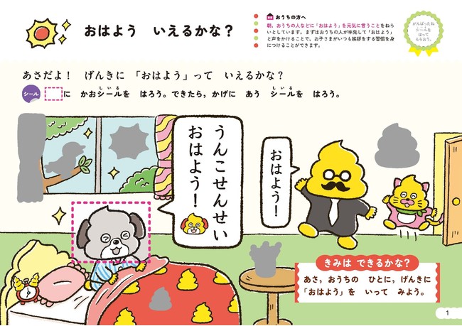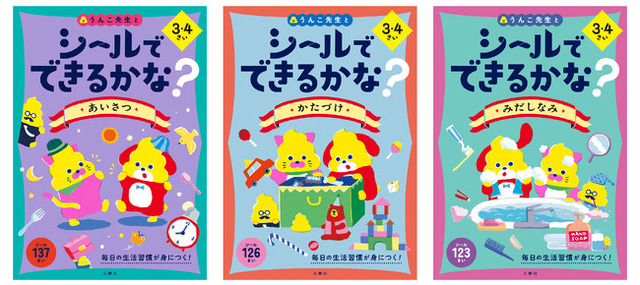株式会社文響社(本社:東京都港区虎ノ門、代表:山本周嗣)は、2022年2月3日(木)に「うんこドリル」シリーズから、シールで生活習慣を学ぶ『シールでできるかな? あいさつ 3・4さい』『シールでできるかな? かたづけ 3・4さい』『シールでできるかな? みだしなみ 3・4さい』の3冊を発売いたしました。