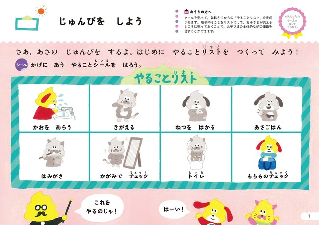 ▲『みだしなみ 3・4さい』では、朝のお支度から手の洗い方、歯みがきの仕方など生活で大事な基礎スキルをお勉強します。
