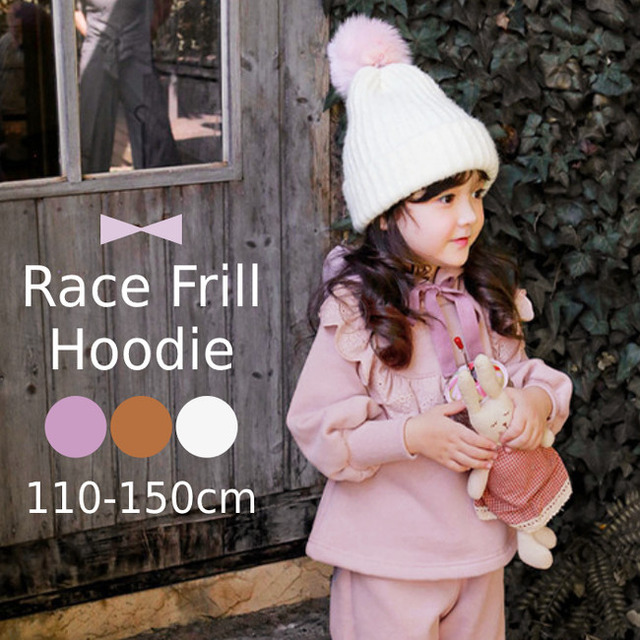 パーカー フード フリル トレーナー スウェット 全3色 アンシャンテプティセレクト商品 韓国子供服 韓国子ども服 韓国こども服 裏起毛 厚手 女の子 レース キッズ こども 幼児