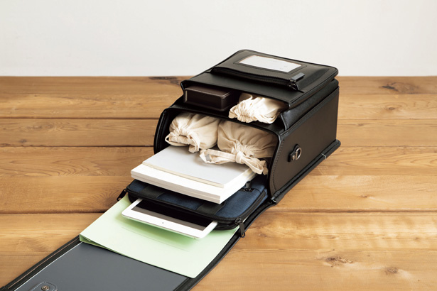 軽量ながら、大マチ(一番大きな収納部の厚み)を約1センチサイズアップしているのも特筆すべき点です。教育現場のICT(情報通信技術)化に伴い、導入が進む学習用のタブレット端末などを収納しやすくしています。