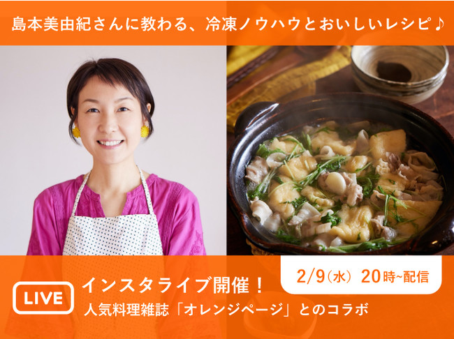 パナソニックは、「はやうま冷凍」搭載冷蔵庫WPXタイプの発売を記念し、2022年2月9日(水)20時から、料理研究家の島本美由紀さんに、業務用レベル(※1)の急速冷凍機能「はやうま冷凍」を活用した今日から役立つ冷凍テクニックや冷凍食材を活用したおいしいレシピを教えてもらうインスタライブを、人気料理雑誌「オレンジページ」とのコラボレーションで実施します。(オレンジページ公式Instagramより配信)
