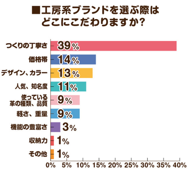 やはり職人の高い技術で作られているという点が工房系ブランドの最大の強みなので、ここを第一に挙げる人が多かったようです。