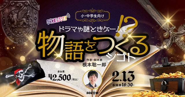 Go Visions株式会社(所在地:東京都品川区、代表取締役:小助川 将)が運営する小・中学生向けオンラインの学び場「SOZOW(ソーゾウ)」は、2月13日(日)に、作家・シナリオライターの根本聡一郎氏をゲストにお迎えし、物語をつくるお仕事について子どもたちが直接質問できる特別イベントを開催いたします。