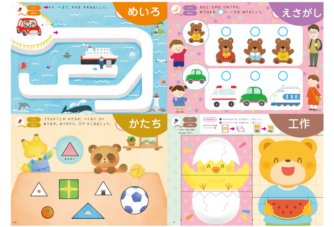 年齢にあった難易度で、2歳でやっておきたい定番のおけいこに取り組めます。