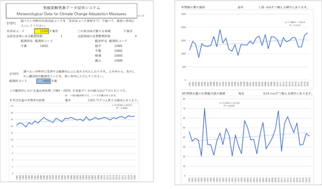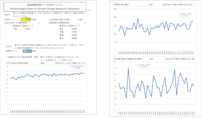 このシステムによって、基礎自治体における地域気候変動適応計画で参照できるグラフが簡単に入手できます。