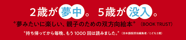 「ほんを おおきく ふってみよう」「そうっと ぺーじを めくって」「ほんを ぱたぱた させてみて」「ふーってふいてごらん」などの言葉に、こどもたちは一瞬で夢中になって、本の世界に入り込みます。2歳のこどもがいっしょうけんめい本に息を吹きかけてみたり、5歳のこどもが自分で何度もくりかえしページをめくったり。こどもの「夢中」が見たい方に絶対おすすめの“双方向絵本”シリーズの第1作&第2作を、2点同時に発売です!