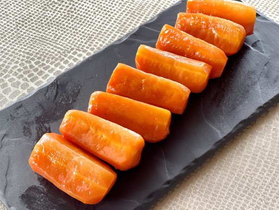2. 仕上げに「日清有機えごま油」を使い、砂糖を使わずにんじんの甘みを引き出した「にんじんのグラッセ」