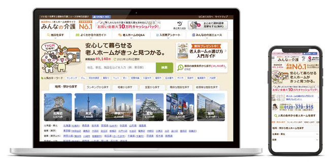 「みんなの介護」には、5万件近くの老人ホーム情報を掲載中。
